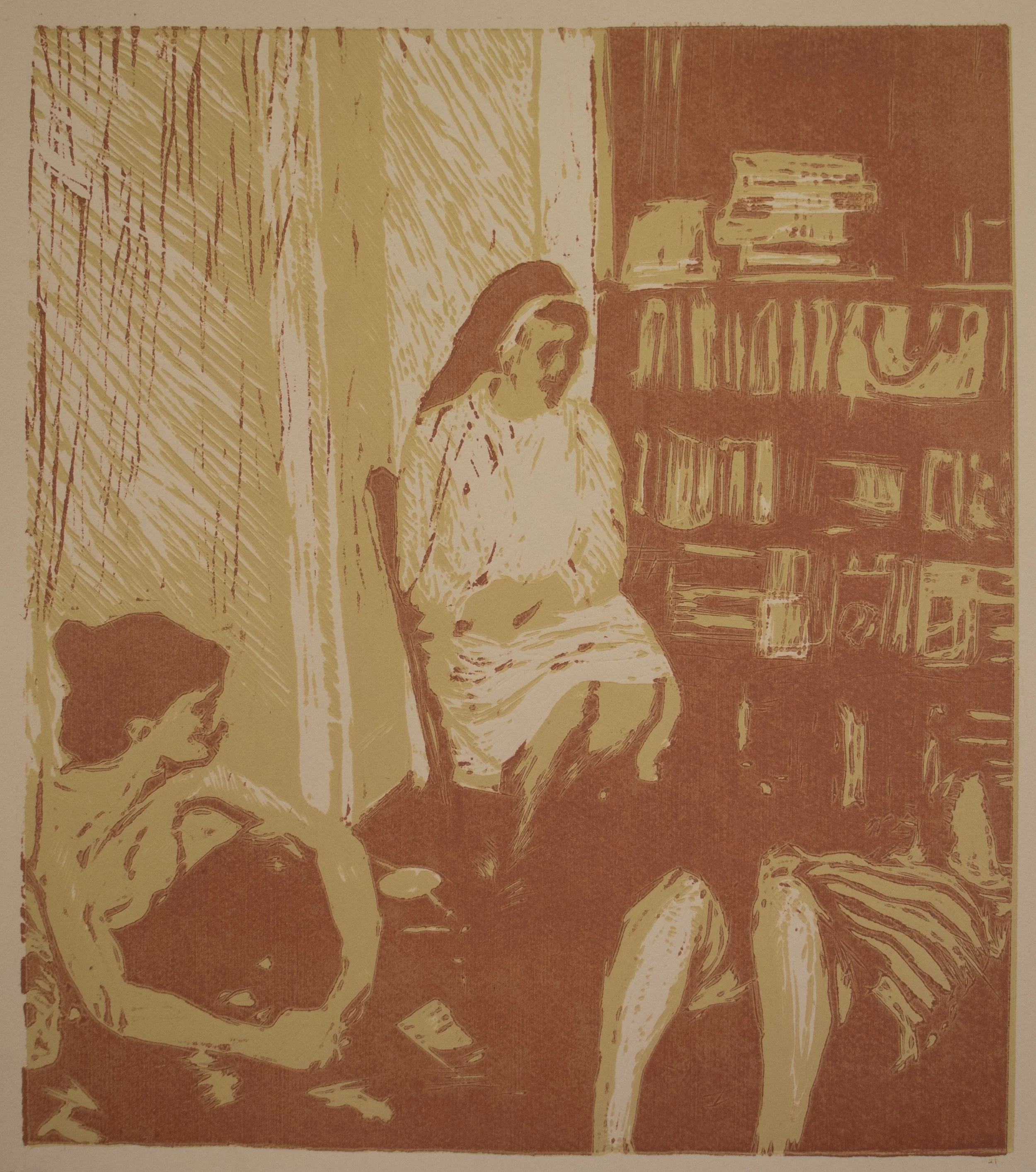 Woodcut on woven paper
